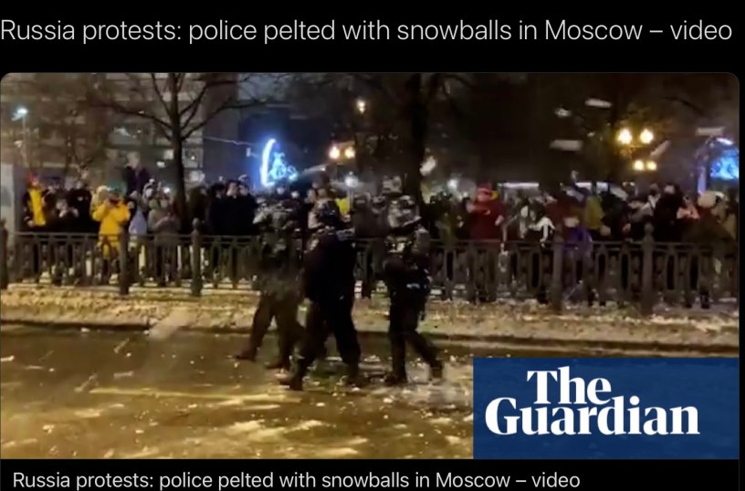— Read on www.theguardian.com/global/video/2021/jan/23/russia-protests-police-pelted-with-snowballs-in-moscow-video