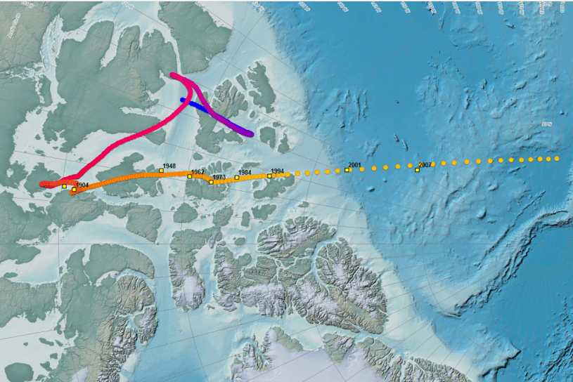 It has been long understood that dip poles migrate over time. In 1831, James Clark Ross located the north dip pole position in northern Canada. Natural Resources Canada (NRCan) tracked the North Magnetic Pole, which is slowly drifting across the Canadian Arctic, by periodically carrying out magnetic surveys to reestablish the Pole’s location from 1948 to 1994. An international collaboration, led by a French fundraising association, Poly-Arctique, and involving NRCan, Institut de Physique du Globe de Paris and Bureau de Recherche Geologique et Miniere, added two locations of the North Magnetic Pole in 2001 and 2007. The most recent survey determined that the Pole is moving approximately north-northwest at 55 km per year.