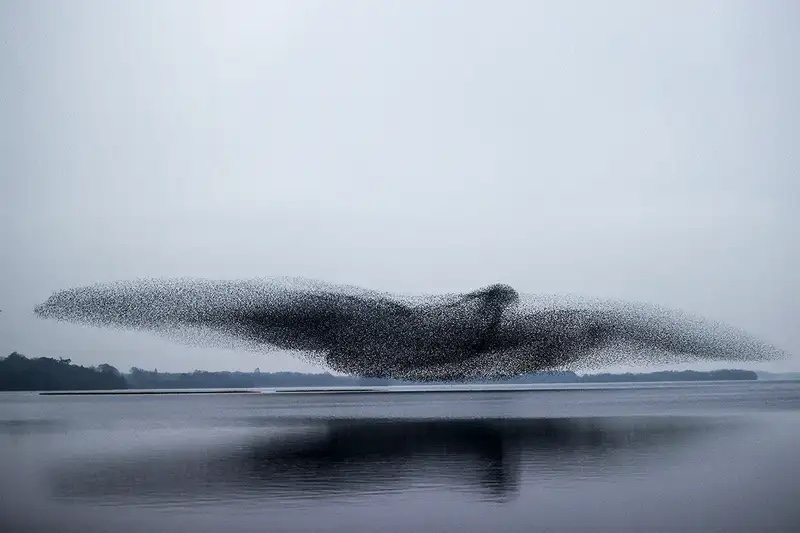 This amazing photograph was taken by James Crombie in Ireland. It shows a murmuration of thousands of starlings acting like a single giant creature to confuse predators