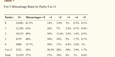 #Education Spontaneous first trimester miscarriage rates per woman among parous women with 1 or more pregnancies of 24 weeks or more July 9, 2021