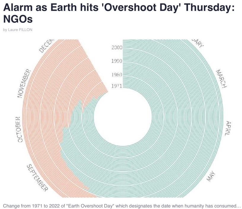 “Mankind marks a dubious milestone Thursday, the day by which humanity has consumed all earth can sustainably produce for this year, with NGOS warning the rest of 2022 will be lived in resource deficit.