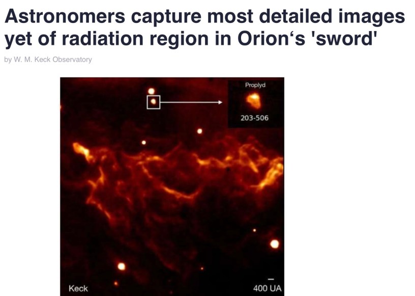 Astronomers capture most detailed images yet of radiation region in Orionʻs ‘sword’