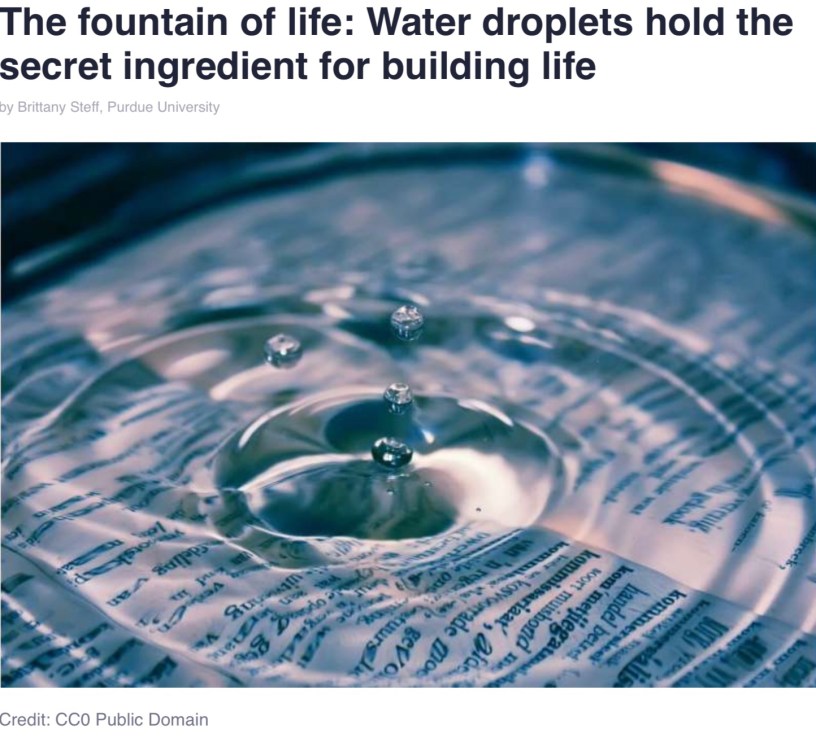 The fountain of life: Water droplets hold the secret ingredient for building life