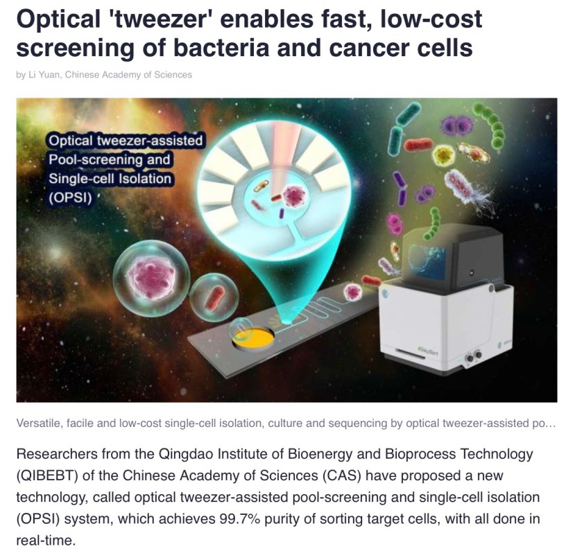Optical ‘tweezer’ enables fast, low-cost screening of bacteria and cancer cells