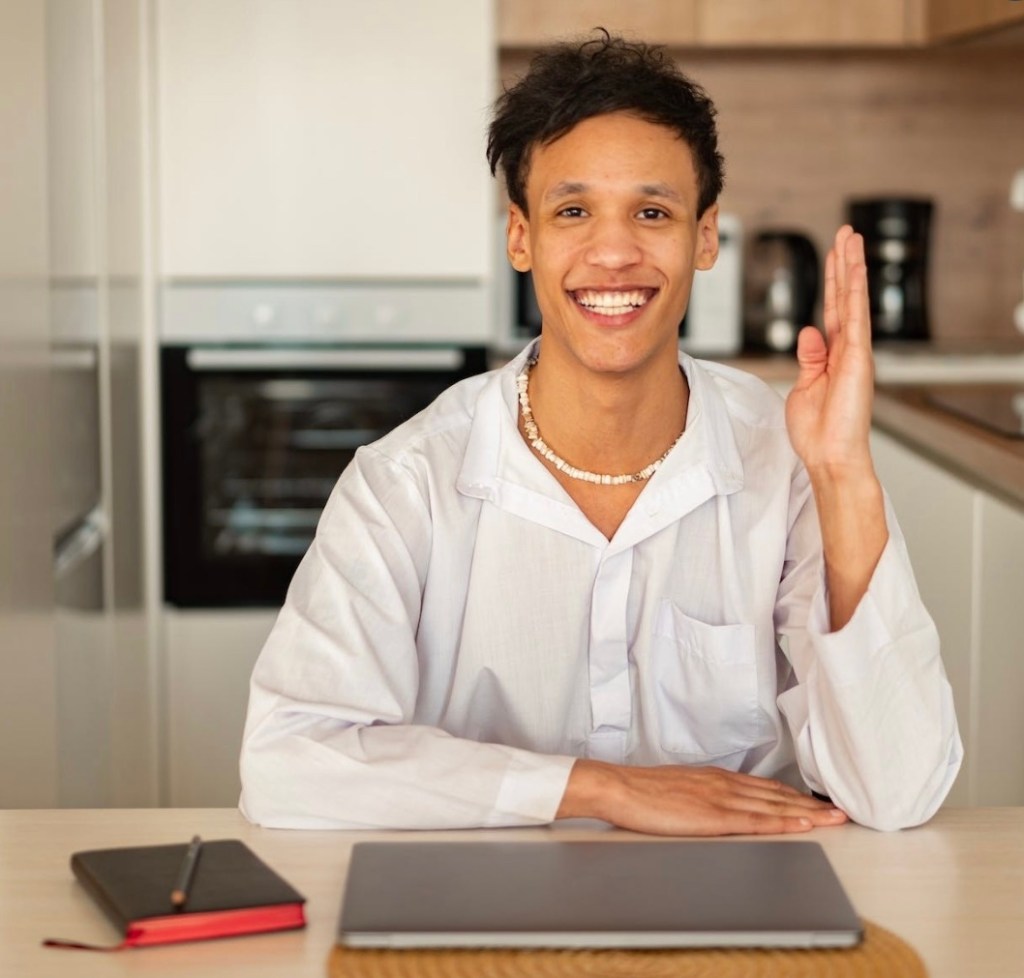 Speaker bends head left or right side as body language showing seriousness, pleasure or other objective emotions