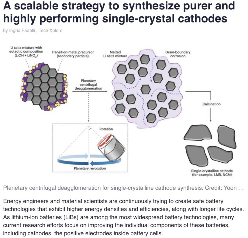 A scalable strategy to synthesize purer and highly performing single-crystal cathodes