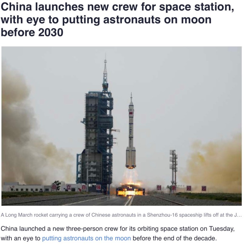 China launches new crew for space station, with eye to putting astronauts on moon before 2030