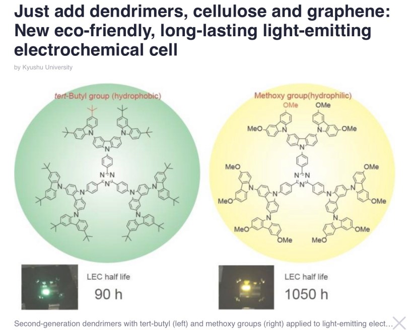 Just add dendrimers, cellulose and graphene: New eco-friendly, long-lasting light-emitting electrochemical cell
