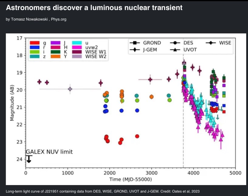 — Read on phys.org/news/2023-07-astronomers-luminous-nuclear-transient.html