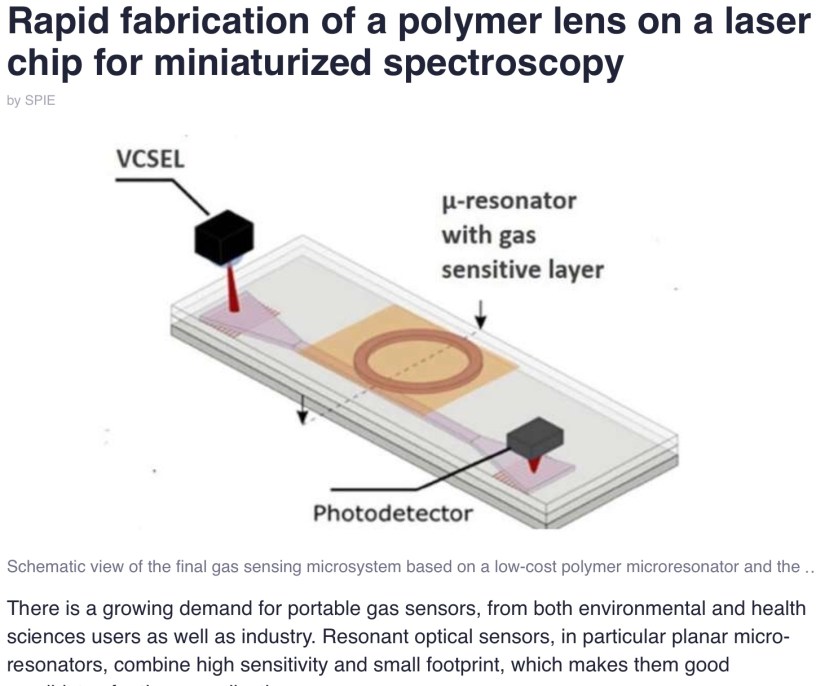 Rapid fabrication of a polymer lens on a laser chip for miniaturized spectroscopy