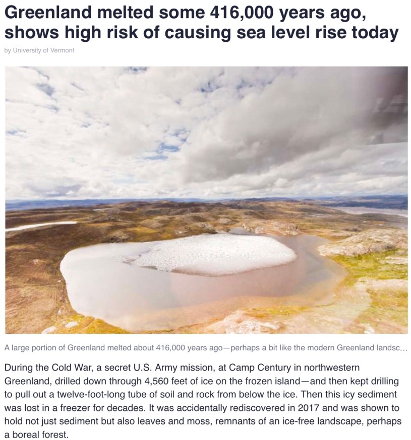 Greenland melted some 416,000 years ago, shows high risk of causing sea level rise today