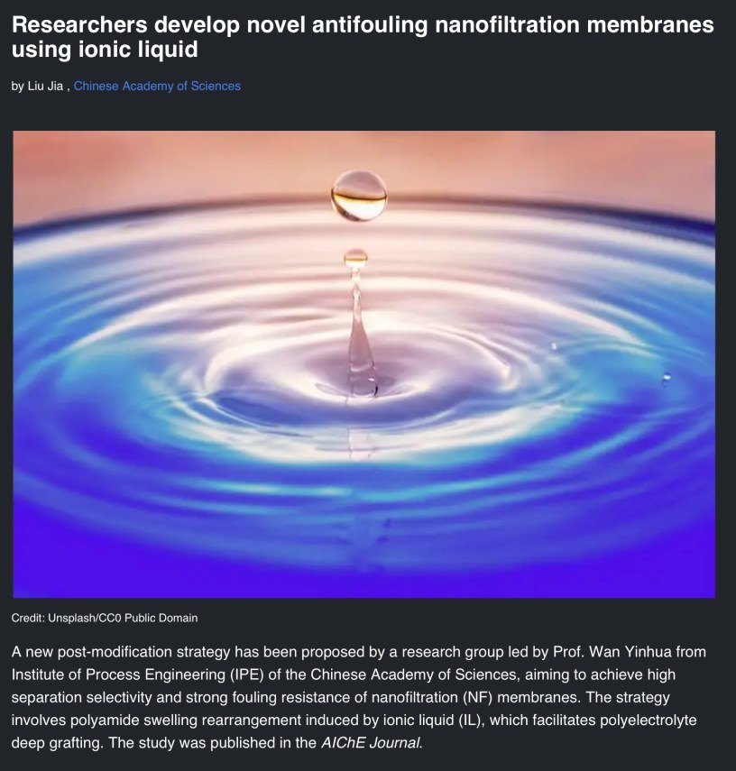 #Education Researchers develop novel antifouling nanofiltration membranes using ionic liquid by Liu Jia, Chinese Academy of Sciences Date: August 14, 2023Author: Wilfredo Santa Gomez,MD phys.org/news/2023-08-antifouling-nanofiltration-membranes-ionic-liquid.html WelcomeShare Click to share on X (Opens in new window) X Click to share on X (Opens in new window) X Like Loading... Related