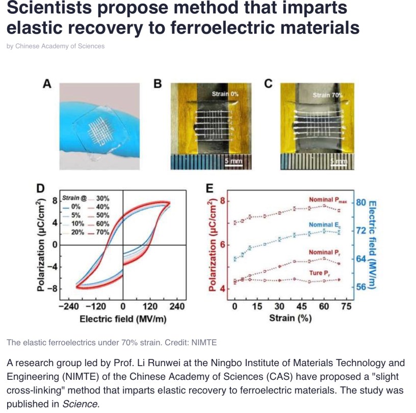 Scientists propose method that imparts elastic recovery to ferroelectric materials