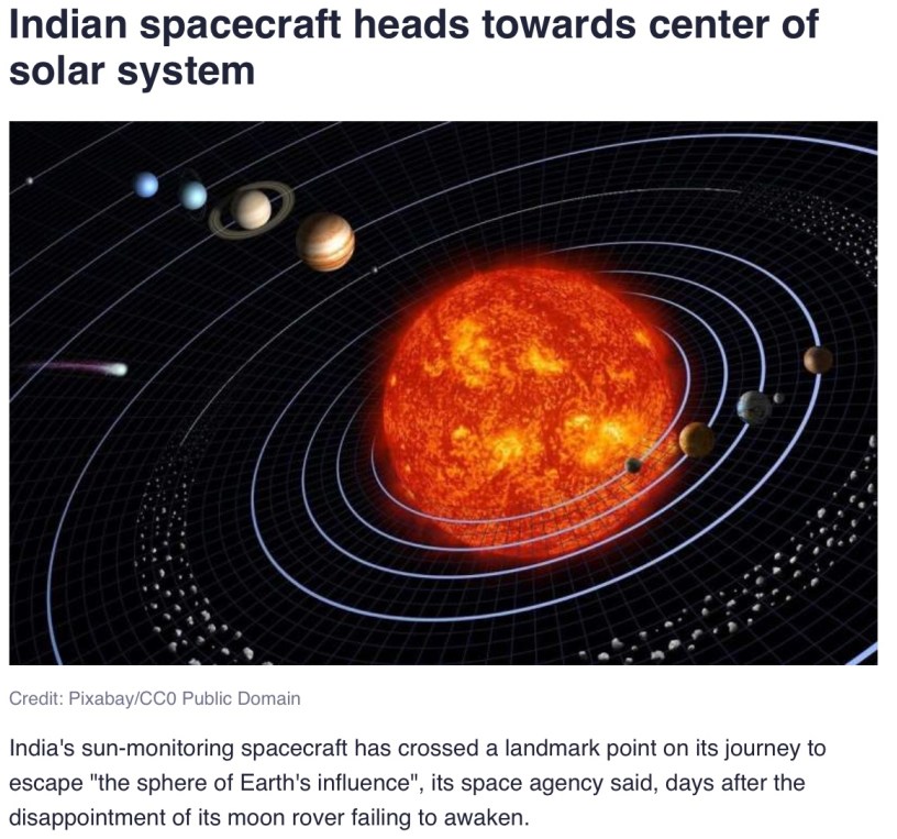 Indian spacecraft heads towards center of solar system
