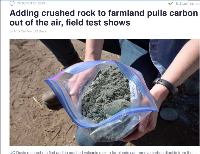 Adding crushed rock to farmland pulls carbon out of the air, field test shows