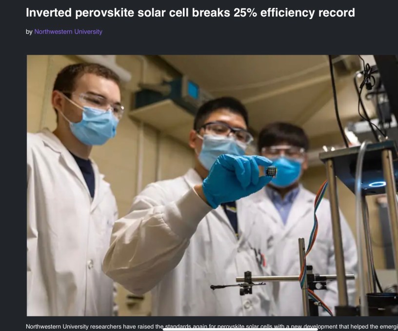 #Education Inverted perovskite solar cell breaks 25% efficiency record Date: November 20, 2023Author: Wilfredo Santa Gomez,MD techxplore.com/news/2023-11-inverted-perovskite-solar-cell-efficiency.html WelcomeShare Click to share on X (Opens in new window) X Click to share on X (Opens in new window) X Like Loading... Related