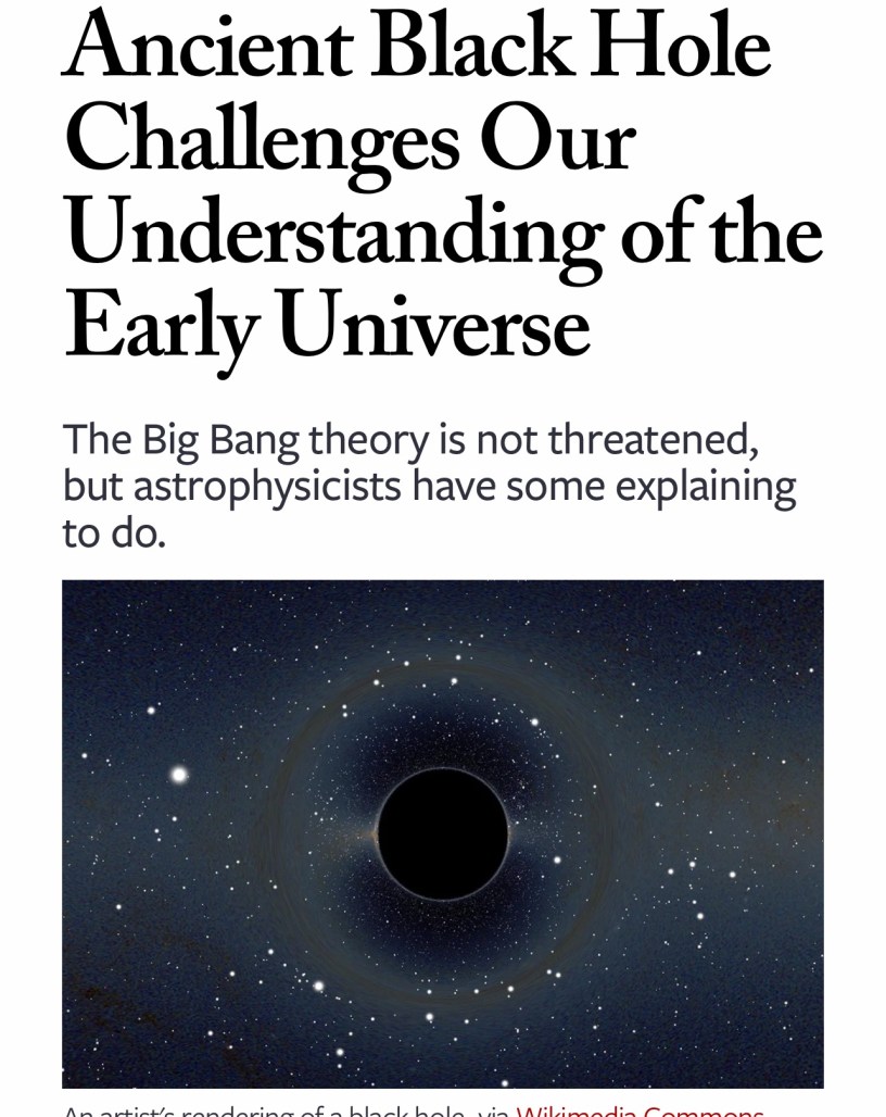 F. Melia, T. M. McClintock, Supermassive black holes in the early Universe, Proceedings: Mathematical, Physical and Engineering Sciences, Vol. 471, No. 2184 (8 December 2015), pp. 1-10