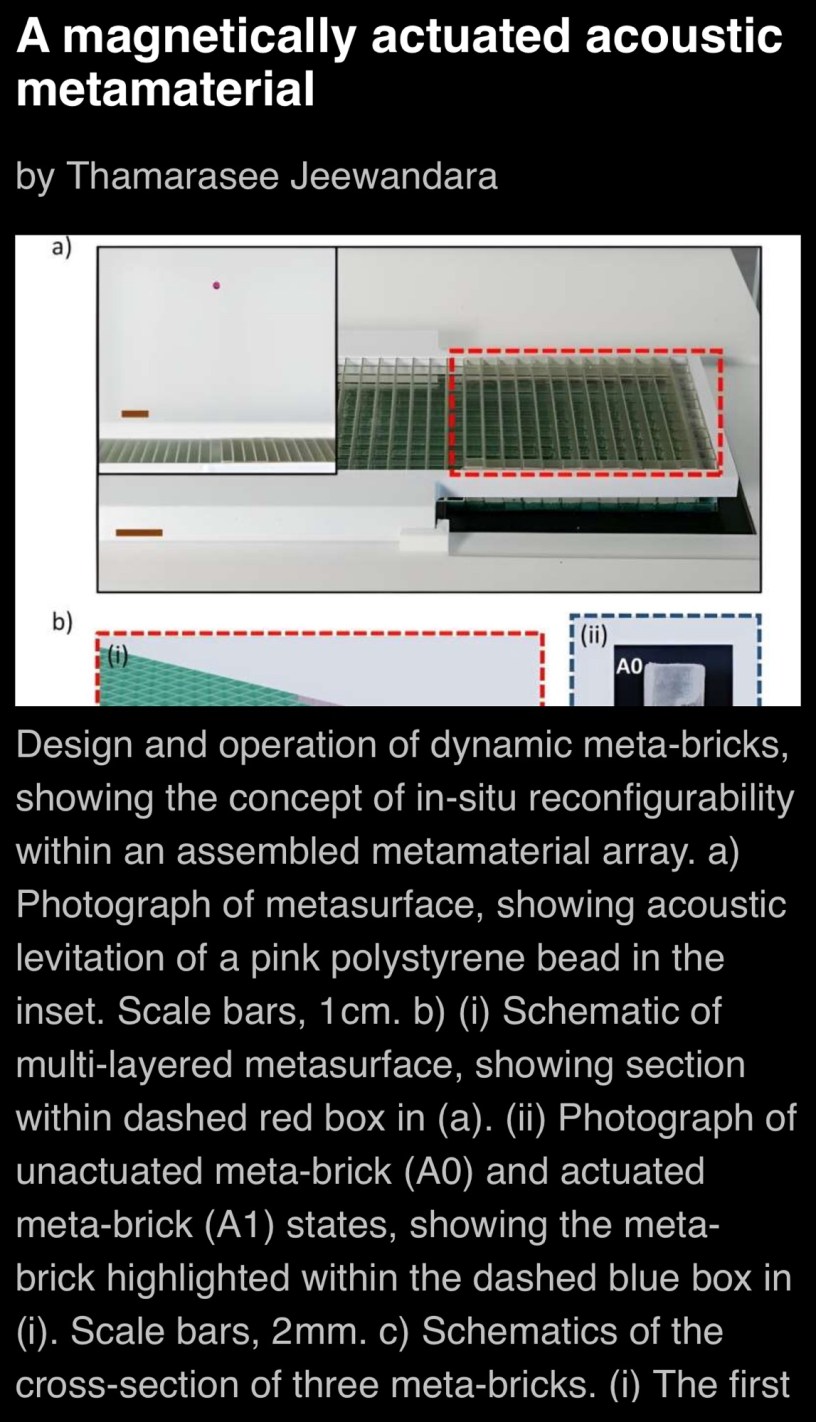 #Education A magnetically actuated acoustic metamaterial Date: January 10, 2024Author: Wilfredo Santa Gomez,MD phys.org/news/2024-01-magnetically-actuated-acoustic-metamaterial.html WelcomeShare Click to share on X (Opens in new window) X Click to share on X (Opens in new window) X Like Loading... Related