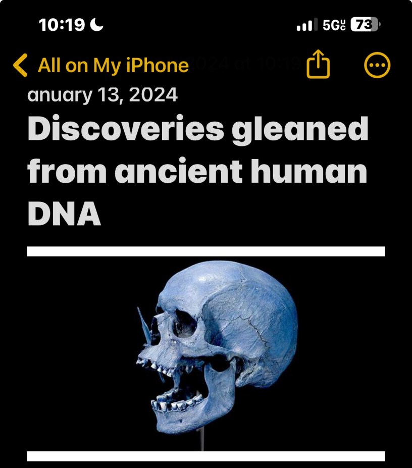 #Education Discoveries gleaned from ancient human DNA Date: January 14, 2024Author: Wilfredo Santa Gomez,MD phys.org/news/2024-01-discoveries-gleaned-ancient-human-dna.html WelcomeShare Click to share on X (Opens in new window) X Click to share on X (Opens in new window) X Like Loading... Related