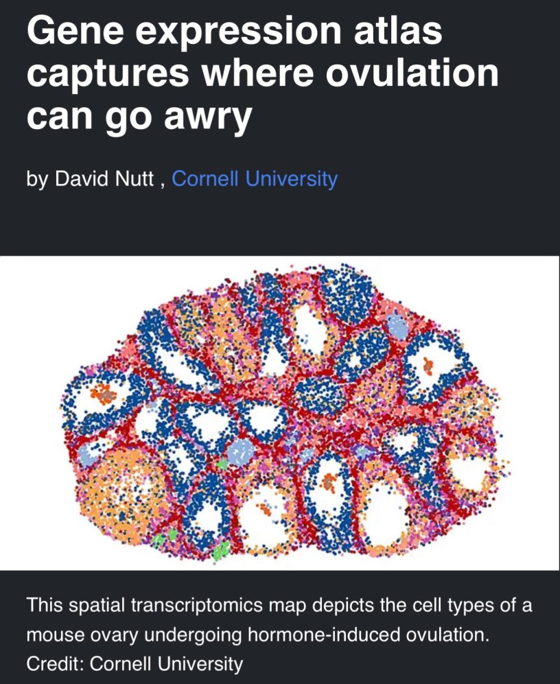 #Education Gene expression atlas captures where ovulation can go awry Date: January 23, 2024Author: Wilfredo Santa Gomez,MD medicalxpress.com/news/2024-01-gene-atlas-captures-ovulation-awry.html WelcomeShare Click to share on X (Opens in new window) X Click to share on X (Opens in new window) X Like Loading... Related