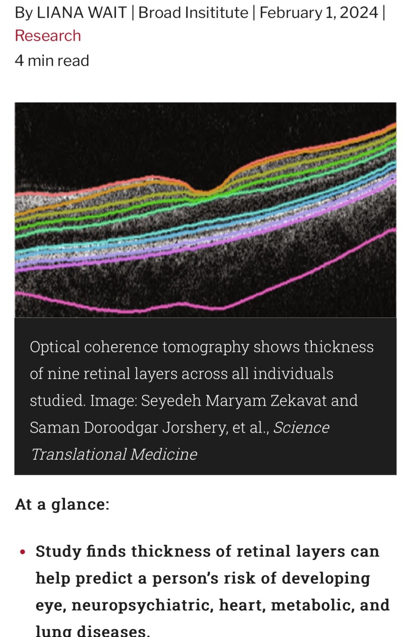 #Education Using Retinal Images to Predict Risk of Eye and Systemic Diseases Date: February 9, 2024Author: Wilfredo Santa Gomez,MD hms.harvard.edu/news/using-retinal-images-predict-risk-eye-systemic-diseases WelcomeShare Click to share on X (Opens in new window) X Click to share on X (Opens in new window) X Like Loading... Related