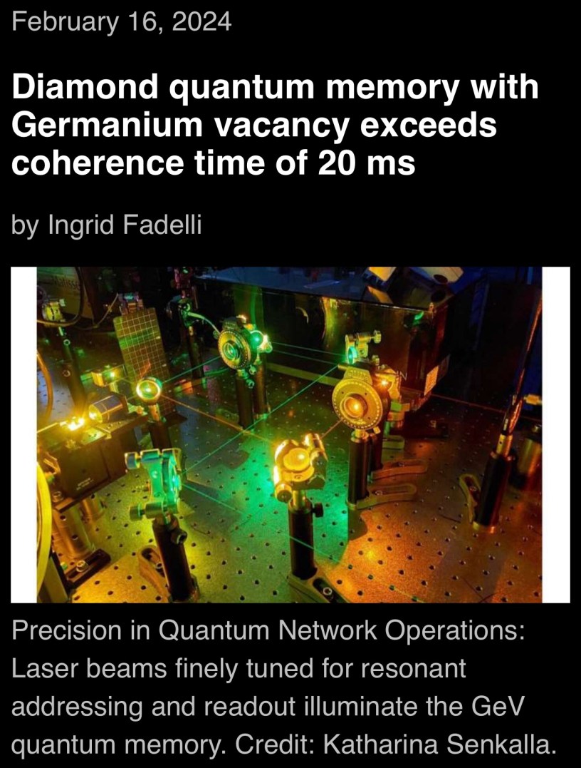 #Education Diamond quantum memory with Germanium vacancy exceeds coherence time of 20 ms Date: February 17, 2024Author: Wilfredo Santa Gomez,MD phys.org/news/2024-02-diamond-quantum-memory-germanium-vacancy.html WelcomeShare Click to share on X (Opens in new window) X Click to share on X (Opens in new window) X Like Loading... Related