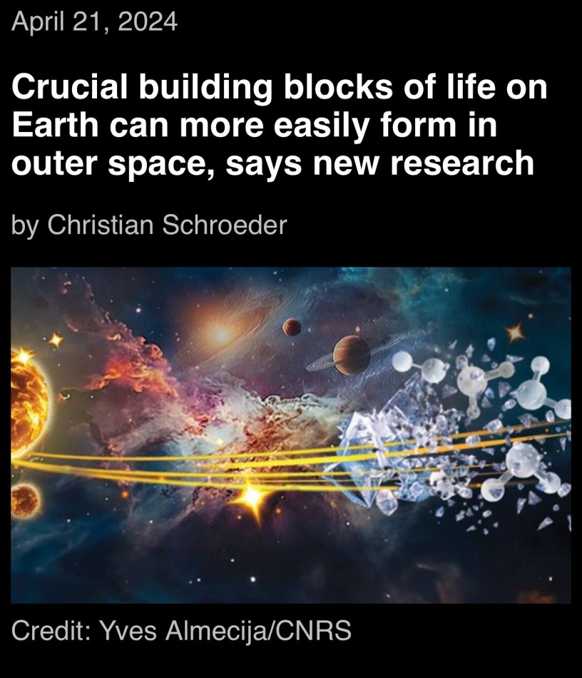 #Education Crucial building blocks of life on Earth can more easily form in outer space, says new research Date: April 21, 2024Author: Wilfredo Santa Gomez,MD phys.org/news/2024-04-crucial-blocks-life-earth-easily.html WelcomeShare Click to share on X (Opens in new window) X Click to share on X (Opens in new window) X Like Loading... Related