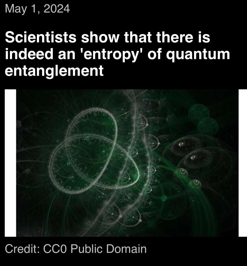 #Education Scientists show that there is indeed an ‘entropy’ of quantum entanglement Date: May 1, 2024Author: Wilfredo Santa Gomez,MD phys.org/news/2024-05-scientists-entropy-quantum-entanglement.html WelcomeShare Click to share on X (Opens in new window) X Click to share on X (Opens in new window) X Like Loading... Related
