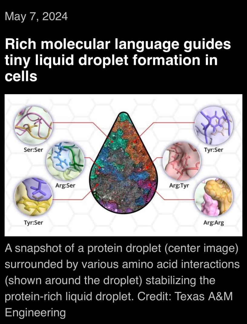 #Education Rich molecular language guides tiny liquid droplet formation in cells Date: May 7, 2024Author: Wilfredo Santa Gomez,MD phys.org/news/2024-05-rich-molecular-language-tiny-liquid.html WelcomeShare Click to share on X (Opens in new window) X Click to share on X (Opens in new window) X Like Loading... Related