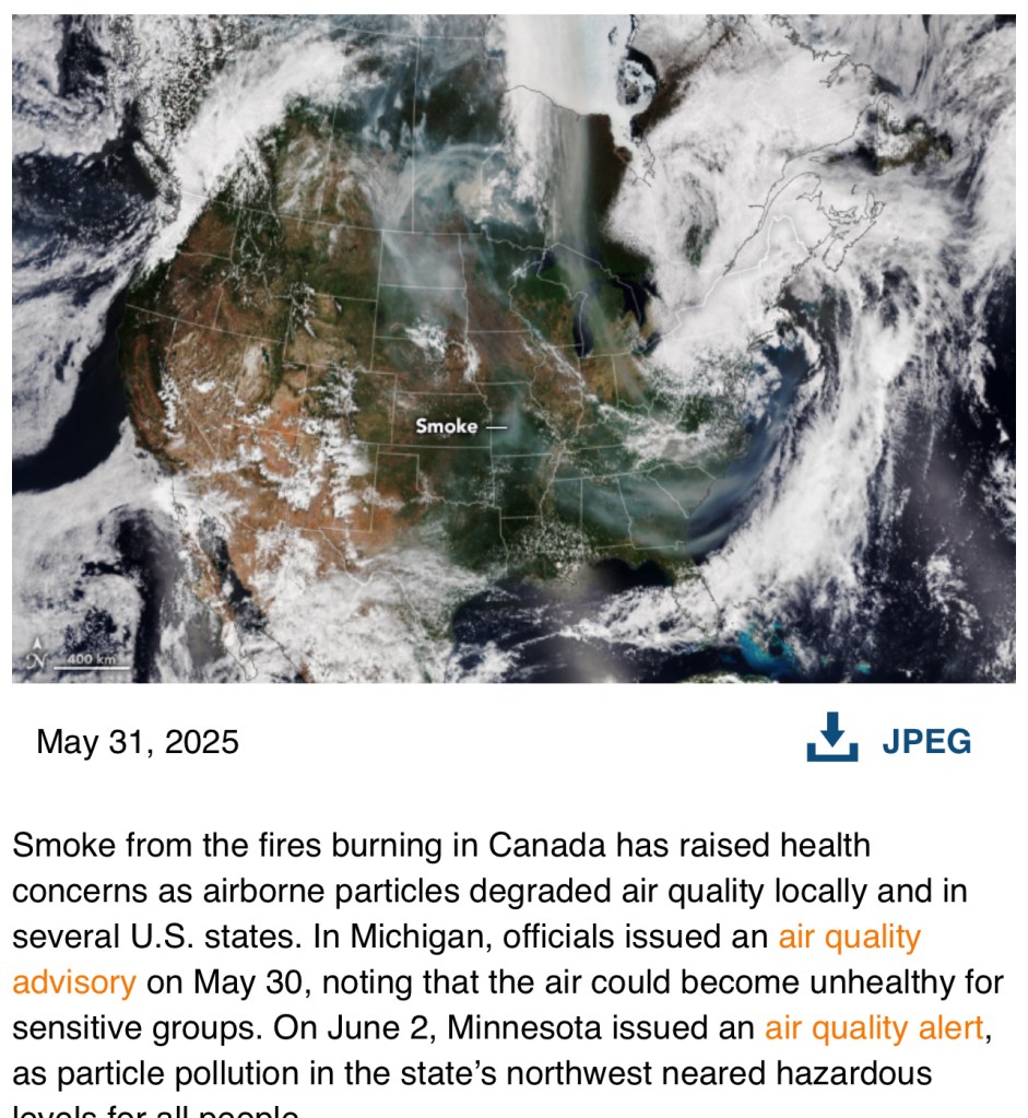 Satellite Image: North American Smoke Plume – May 31, 2025