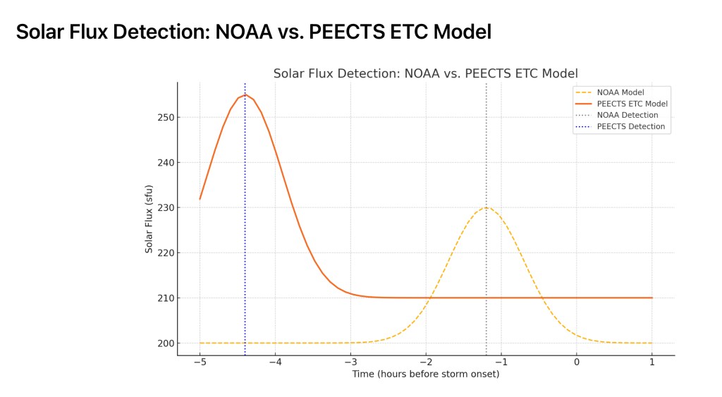 PEECTS ETC model exceeded NOAA’s detection timing by 3.2 hours, offering a quantitatively validated advantage for grid protection and emergency preparedness.