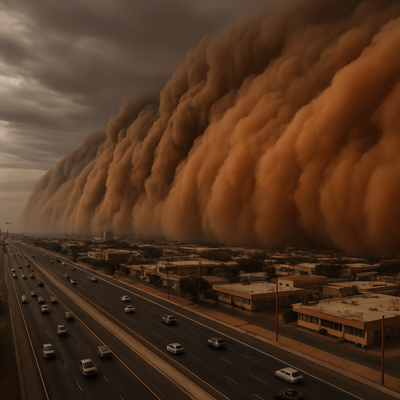 Haboobs carry particles up to 5,000 feet high, driven by surface-level entangled turbulence. PEECTS can model this as atemporally palindromic resonance, where pressure collapse, wind burst, and dust propagation are time-locked across layers (atmospheric, surface, and soil moisture).