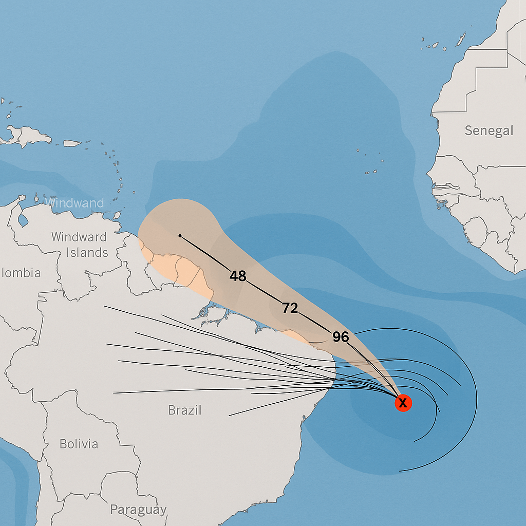- Elastic time signals suggest energy clustering along the equatorial Atlantic corridor, favoring intensification after mid-week.